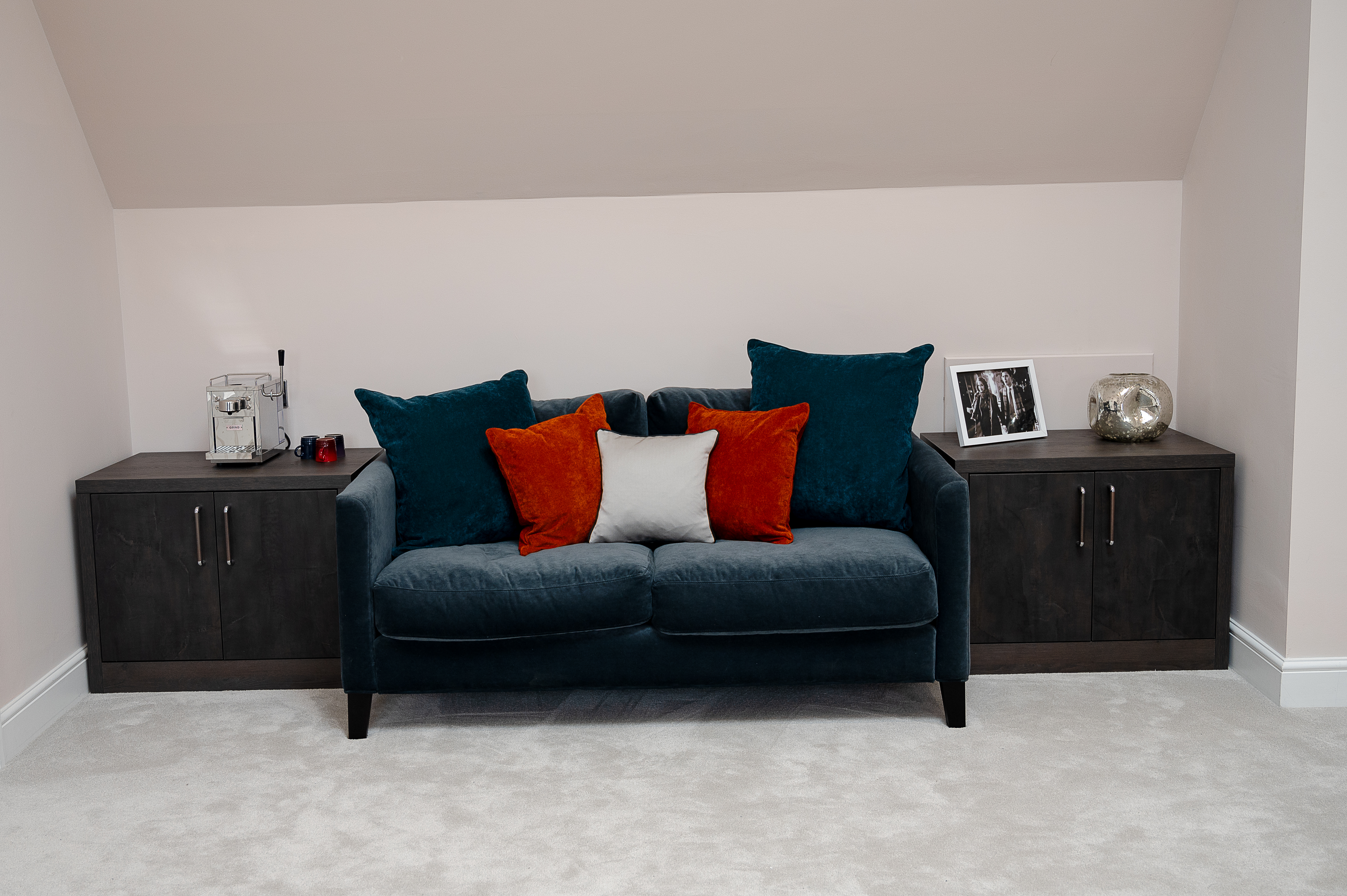 by 2 cuban oak cabinets. This creates a tranquil and cosy area perfect for making your morning coffee, neatly utilising this part of the room, that may otherwise have stayed empty.